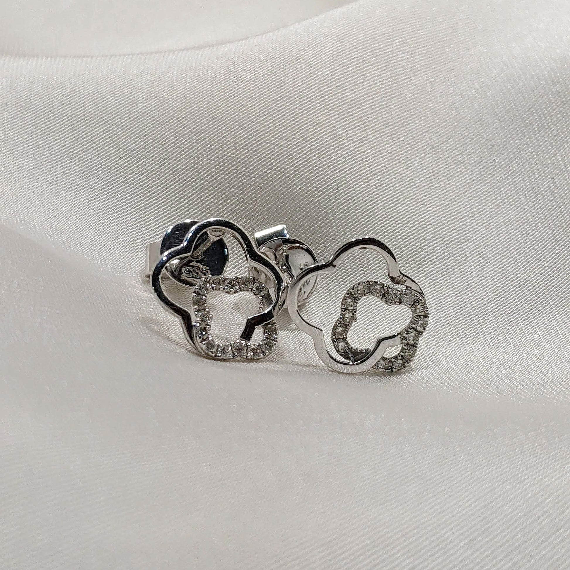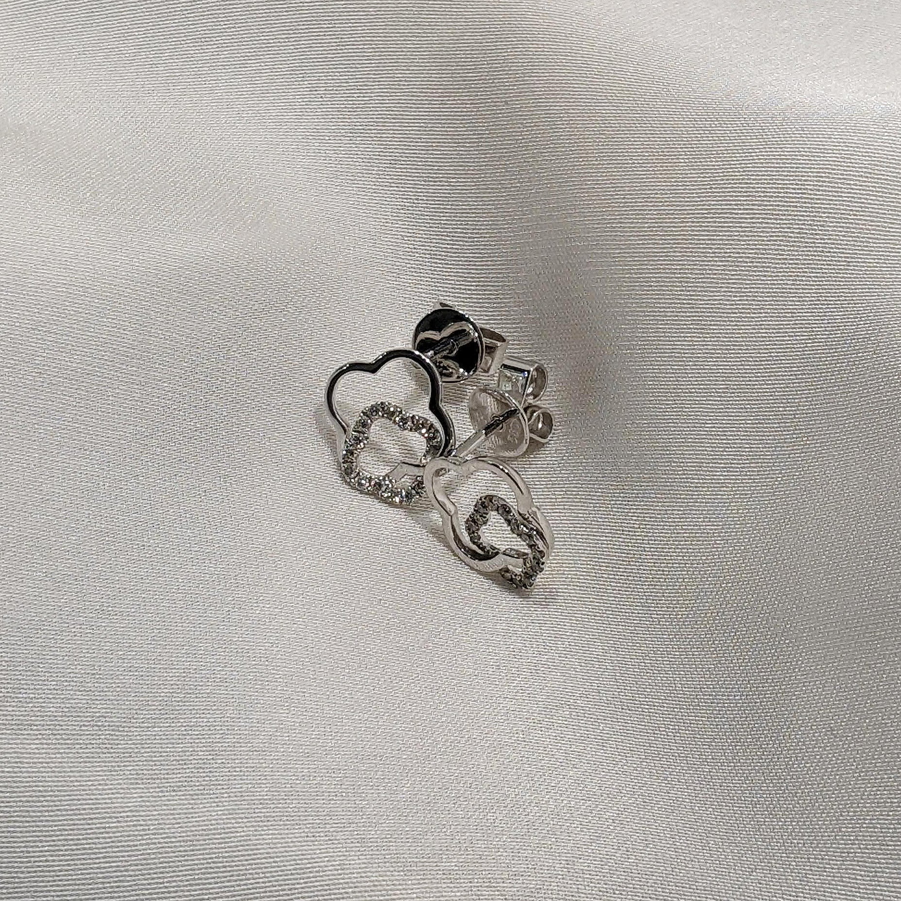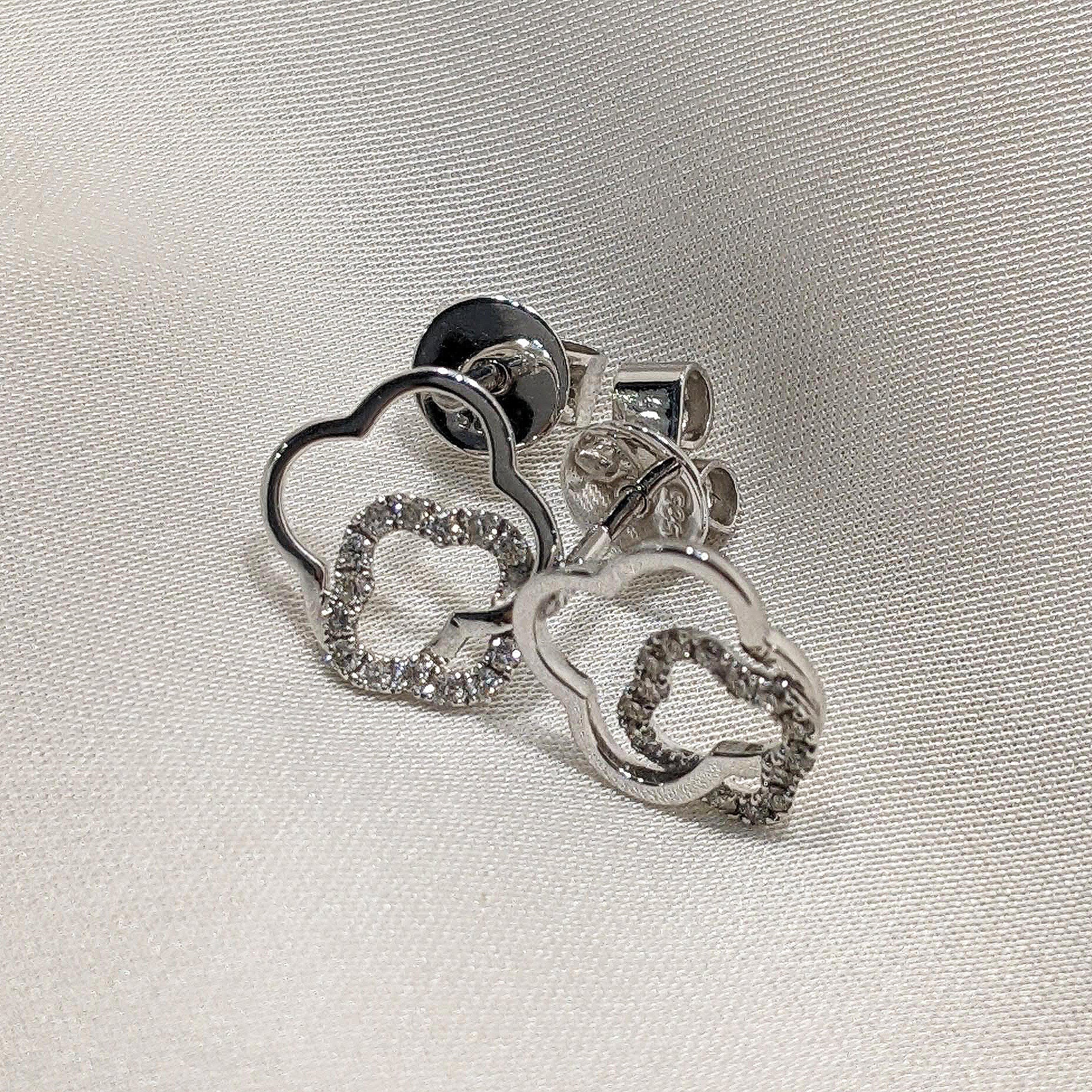 Clover not once, but twice. Plain 14ct White Gold, intertwined with a smaller, Diamond-Set Clover. Secured with push-on backs.