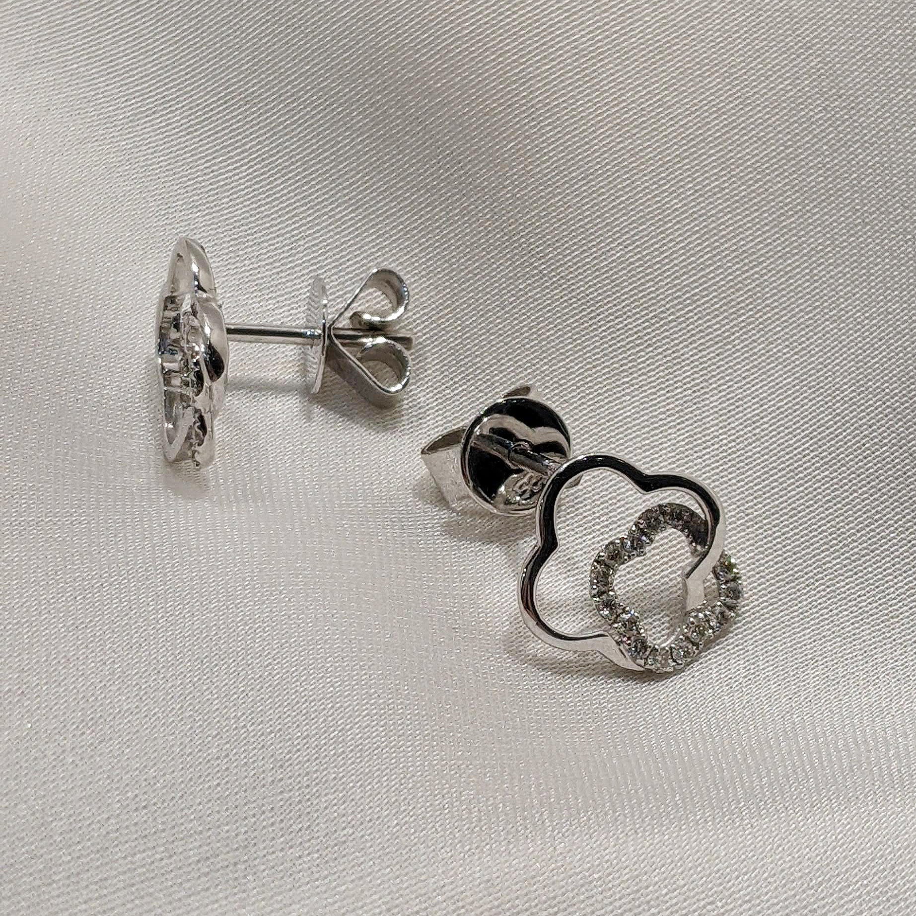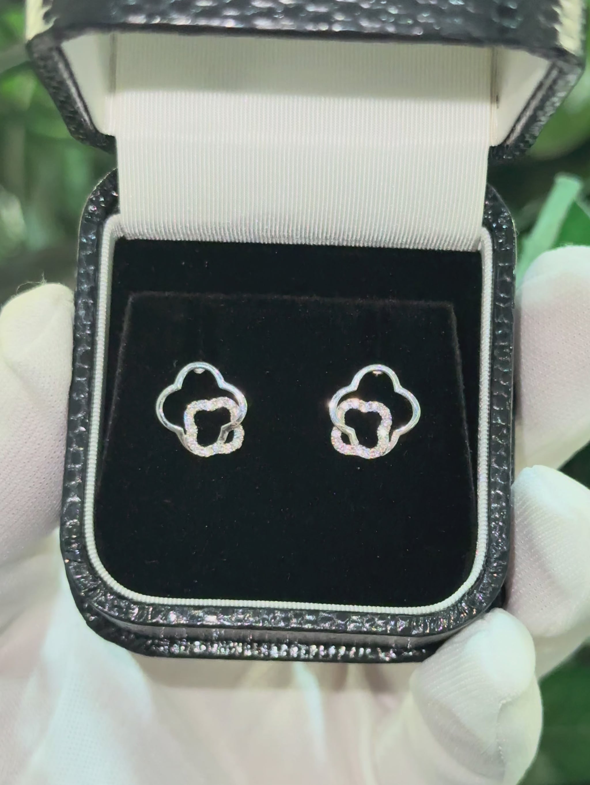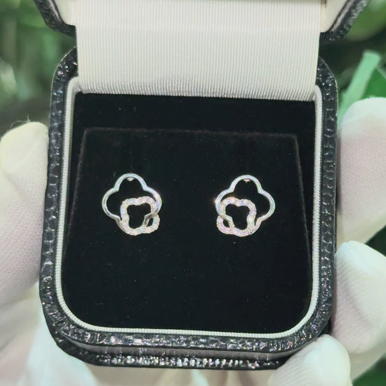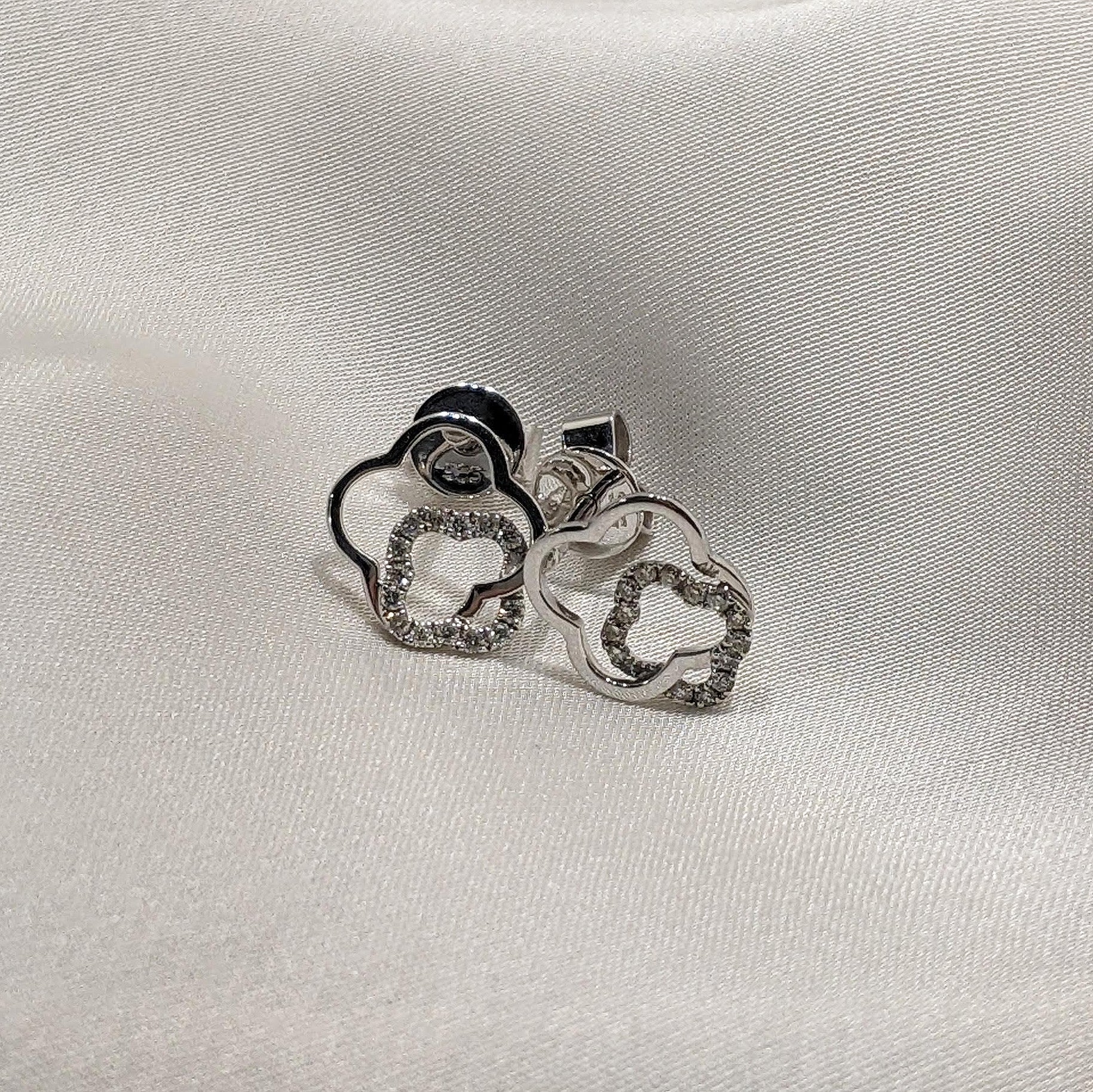 Clover not once, but twice. Plain 14ct White Gold, intertwined with a smaller, Diamond-Set Clover. Secured with push-on backs.
