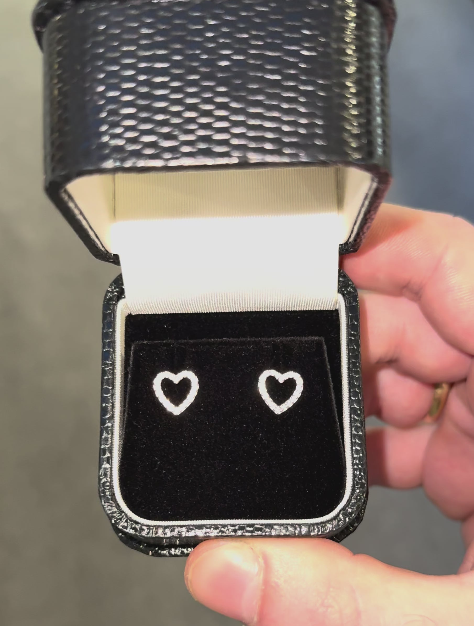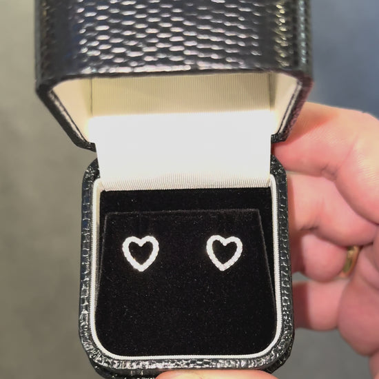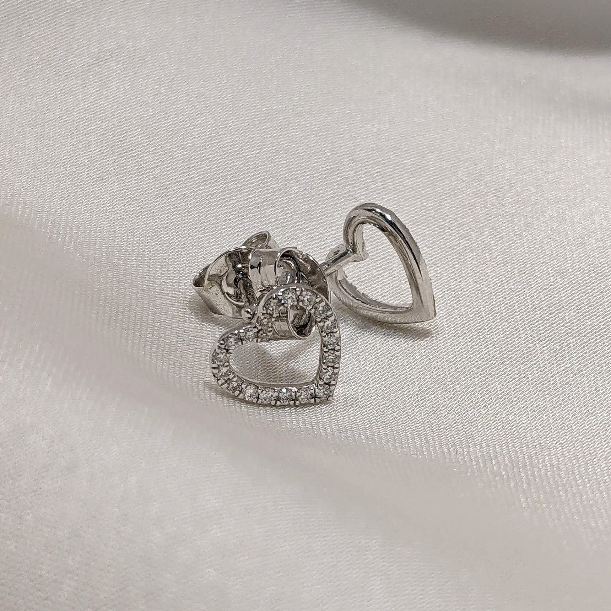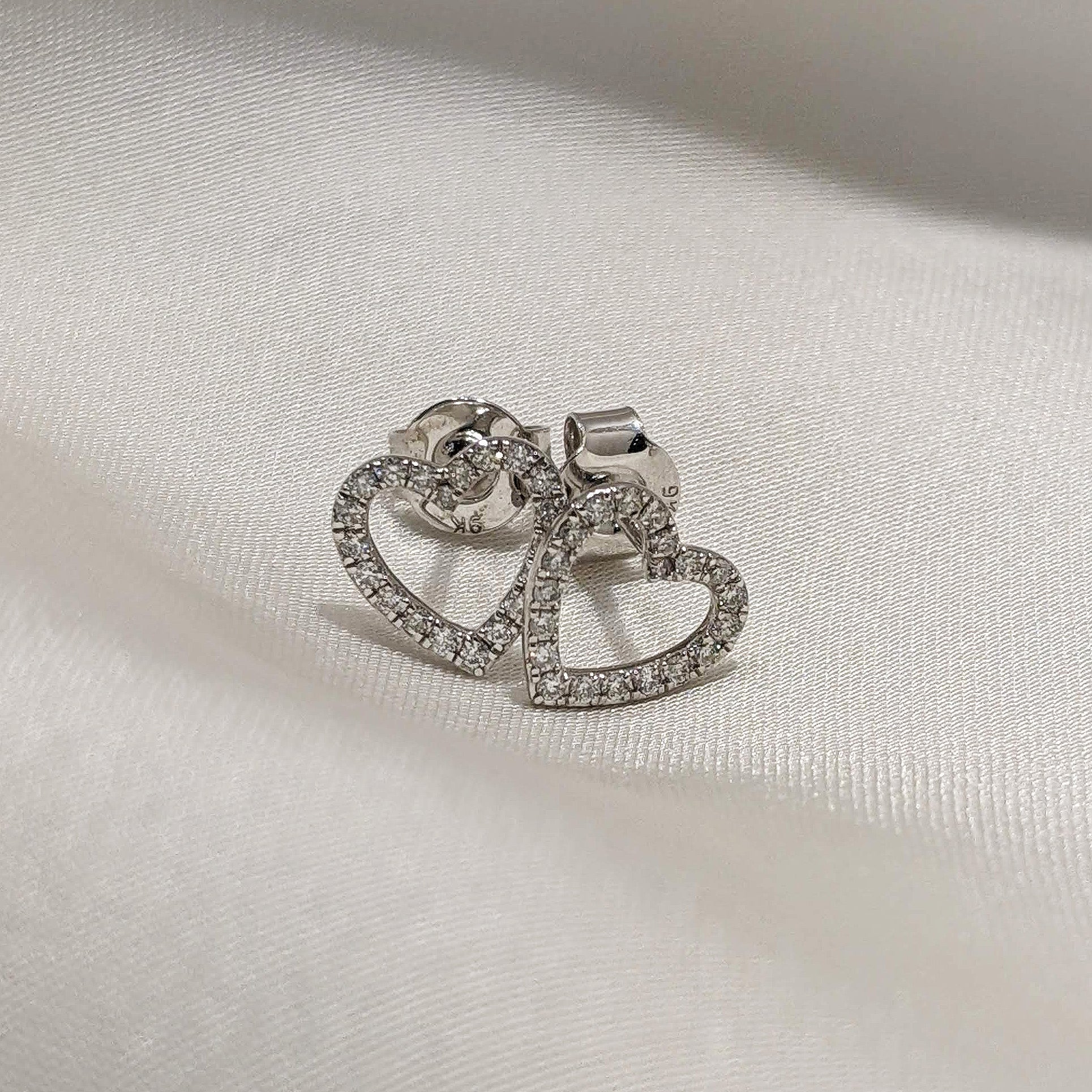 These stunning Heart-Shape stud earrings are crafted from 9ct White Gold and sparkle with a combined 0.21ct of natural white Diamonds. Featuring round brilliant-cut diamonds expertly set in a delicate micro setting, they secure comfortably with push-on backs, offering both elegance and ease for everyday wear.