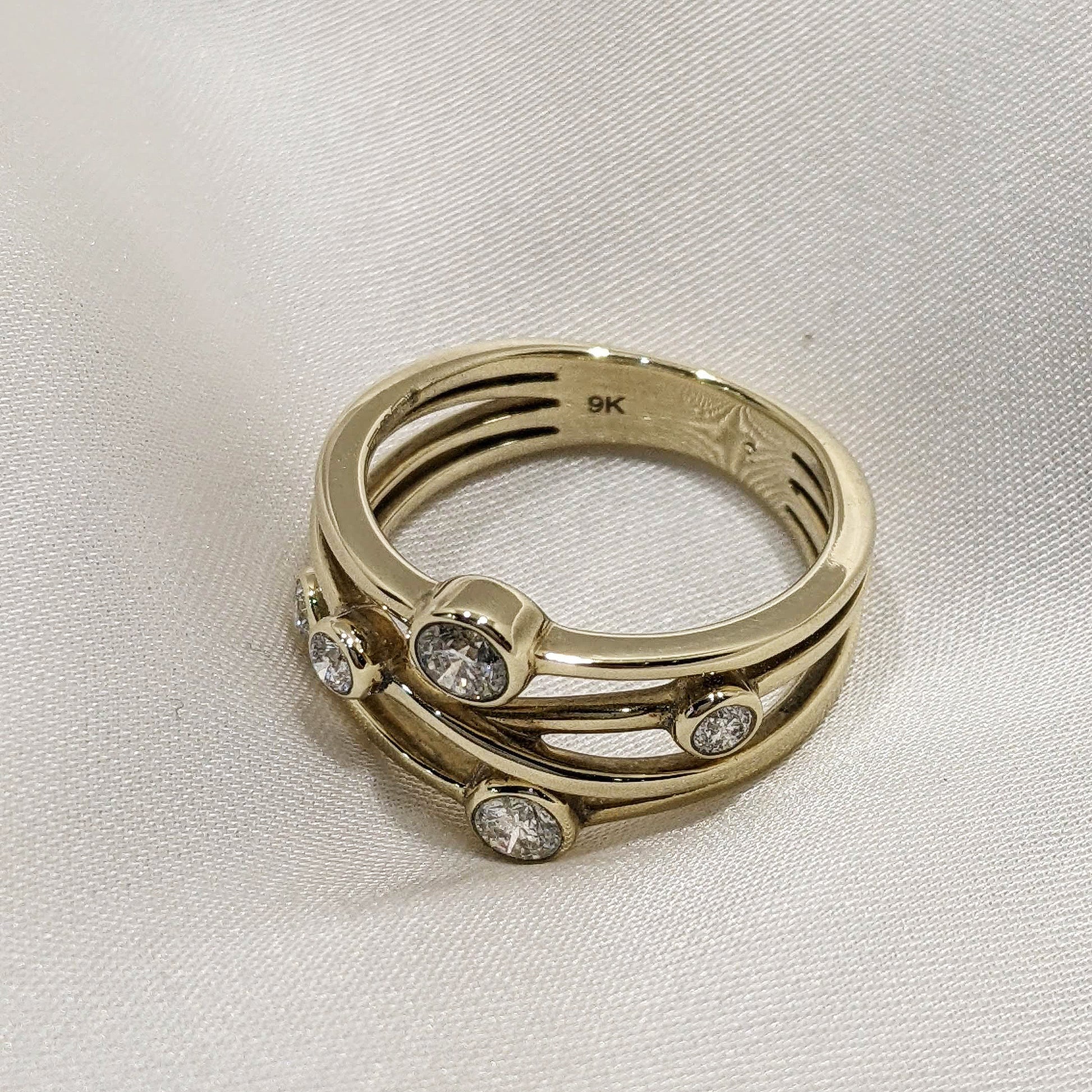 - 5 natural Round Brilliant-Cut Diamonds set into a Rubover-Style setting.